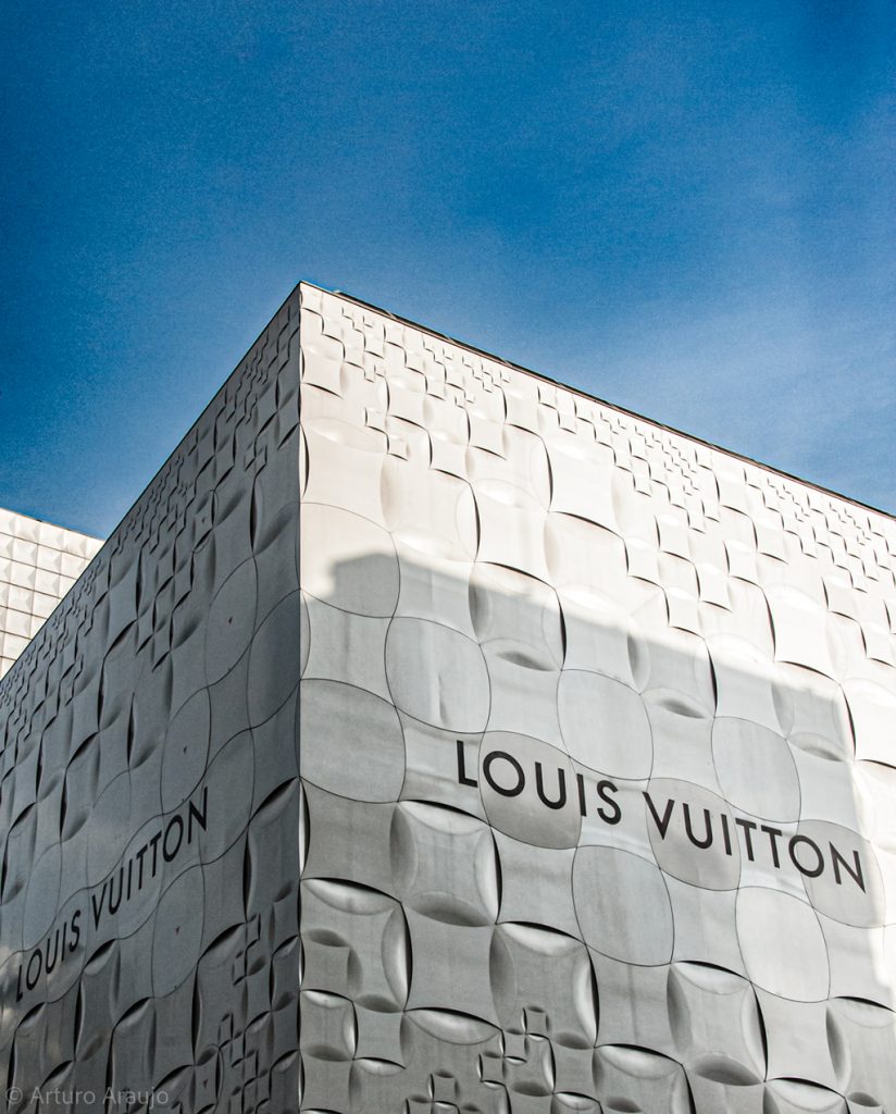 Este espectacular edificio, cuenta con paredes con un relieve geométrico que hace referencia al patrón a cuadros característico de la marca francesa y al kimono tradicional de Japón, elementos que como disparos, hacen una gran combinación de arquitectura y simbolismos.